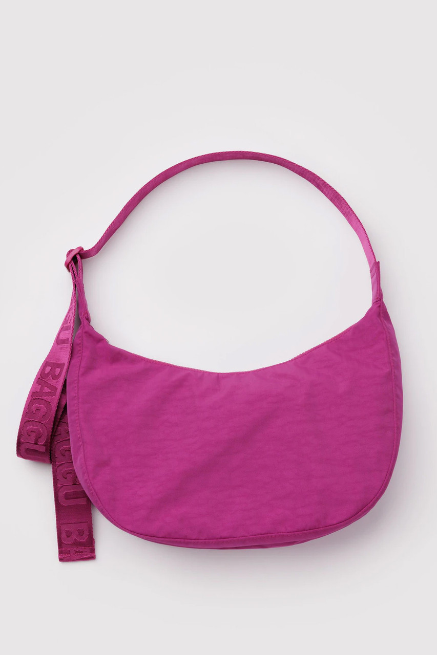 Practical doesn’t have to be boring. Our Medium Nylon Crescent Bag is effortlessly casual and large enough to carry more than just the essentials. Wear it slung over your shoulder or crossbody for a hands-free experience. Complete with two interior pockets that make it easy to stay organized. By Baggu.