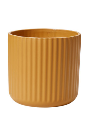 This ribbed ceramic planter adds neutral warmth & brightens up indoor or outdoor spaces. It is watertight with vertical ridges and a hand-glazed matte finish. There is no drainage hole so this modern pot is ideal for a drop-in plant. By United Floral.