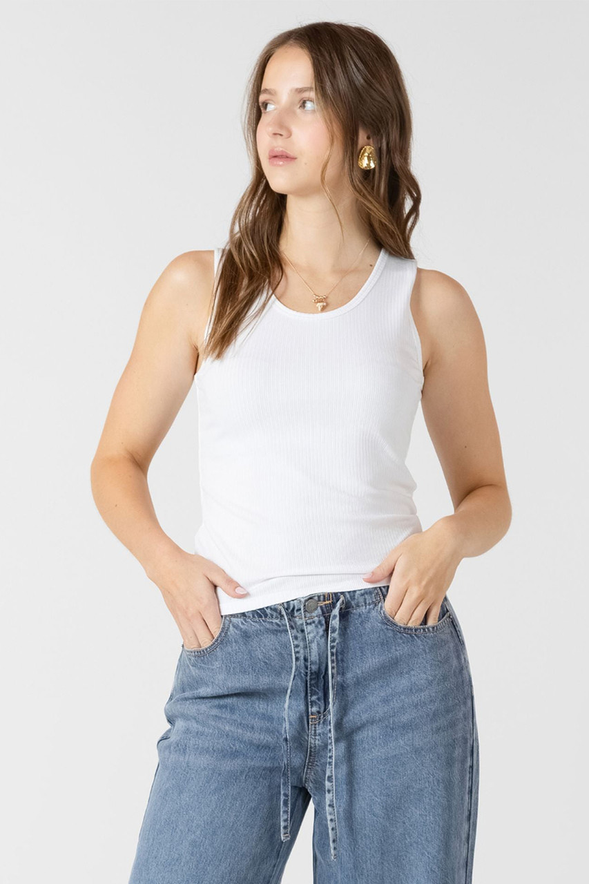 Click the button below to add the Dex Ribbed Tank in White. to your wish list.