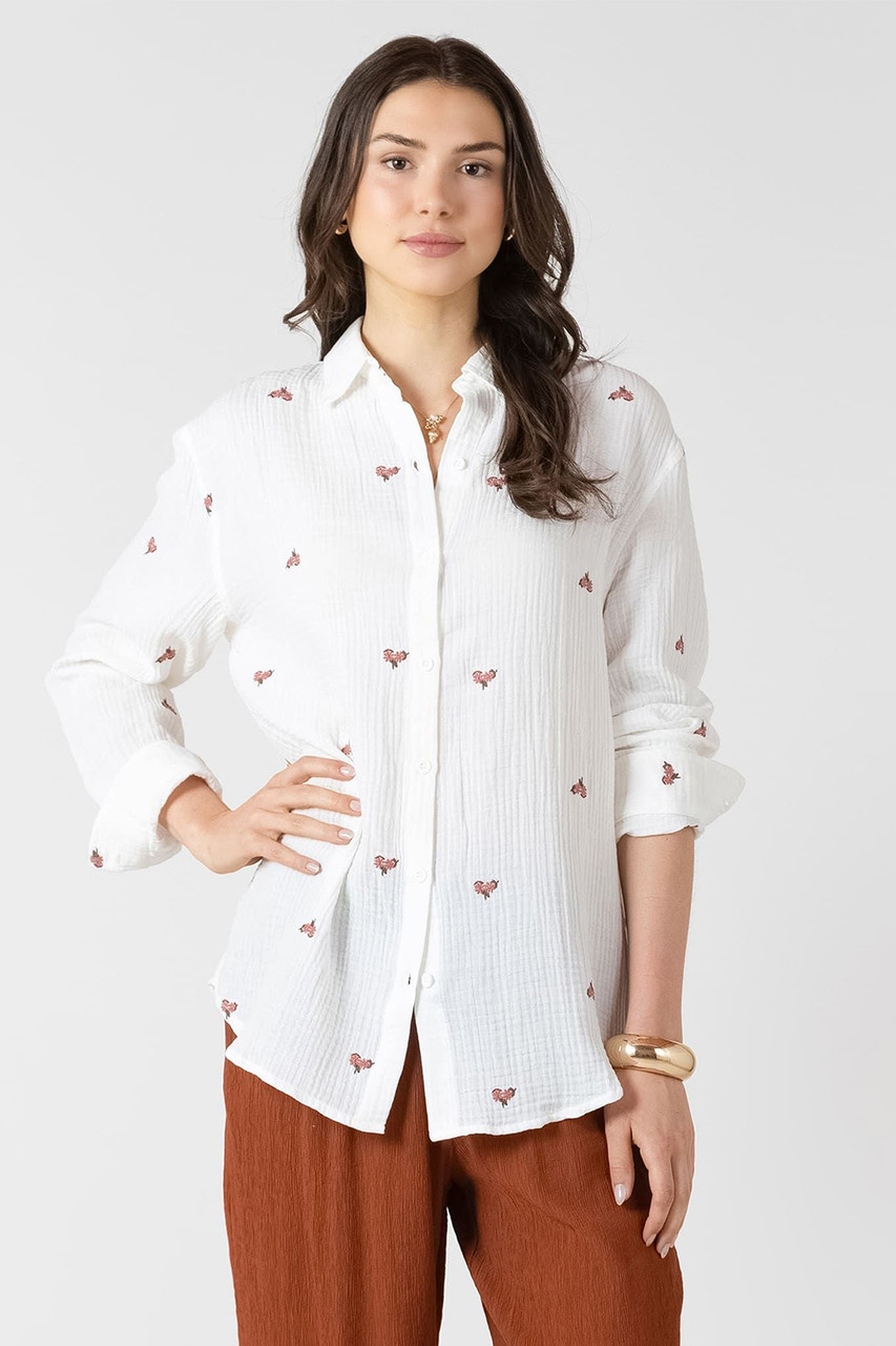 Effortless style meets botanical charm in this textured blouse. Long sleeves frame delicate floral accents that pop against the neutral base, while the relaxed fit invites all-day comfort. The subtle texture adds dimension and visual interest, making it perfect for layering or wearing solo. A versatile piece that transitions seamlessly from casual weekends to dressed-up occasions. By Dex.