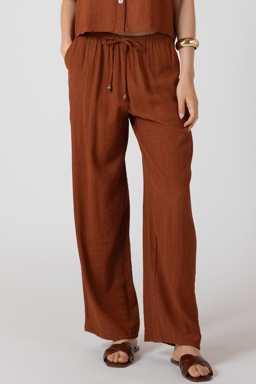 Slip into summer ease with the Dex Drawstring Wide Leg Pants. Crafted from breathable fabric that keeps you cool when temperatures climb, these pants deliver relaxed style without the effort. The adjustable drawstring waist and elastic back create a forgiving fit that flows naturally with every move—ideal for casual patios, backyard hangs, or lazy afternoons. Wide legs offer that effortless, laid-back vibe that works whether you're dressing up or keeping it chill. By Dex.