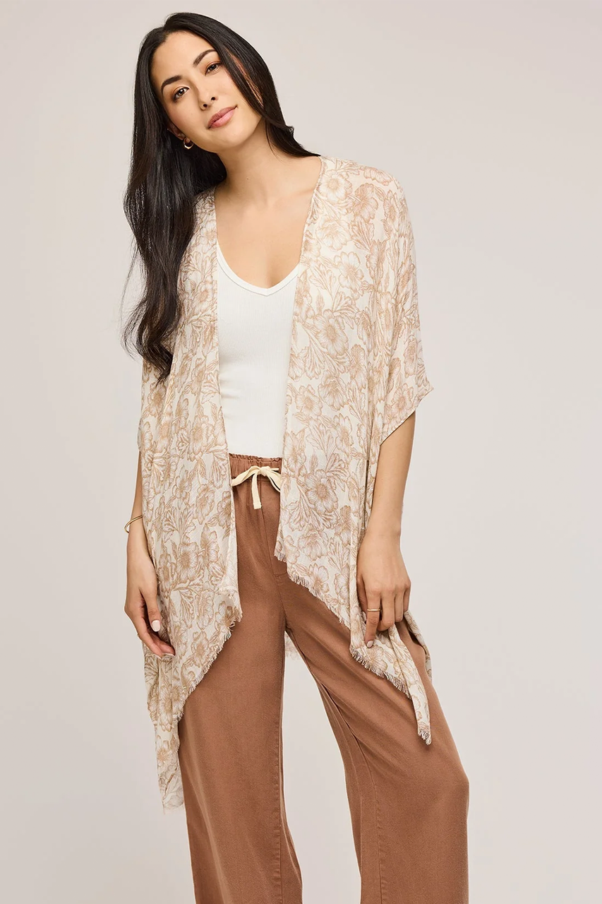 The Dawn cover-up is made of EcoVero viscose and features a print that was designed in-house. Layer it with a t-shirt and jeans for a casual look, or over a bathing suit for a day at the beach. By Gentle Fawn.