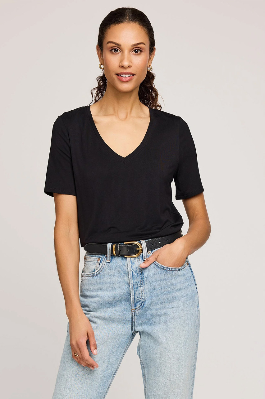 The Jamie t-shirt is made of super soft EcoVero rayon jersey. Features include a v-neckline and relaxed fit that is perfect for everyday wear. By Gentle Fawn.