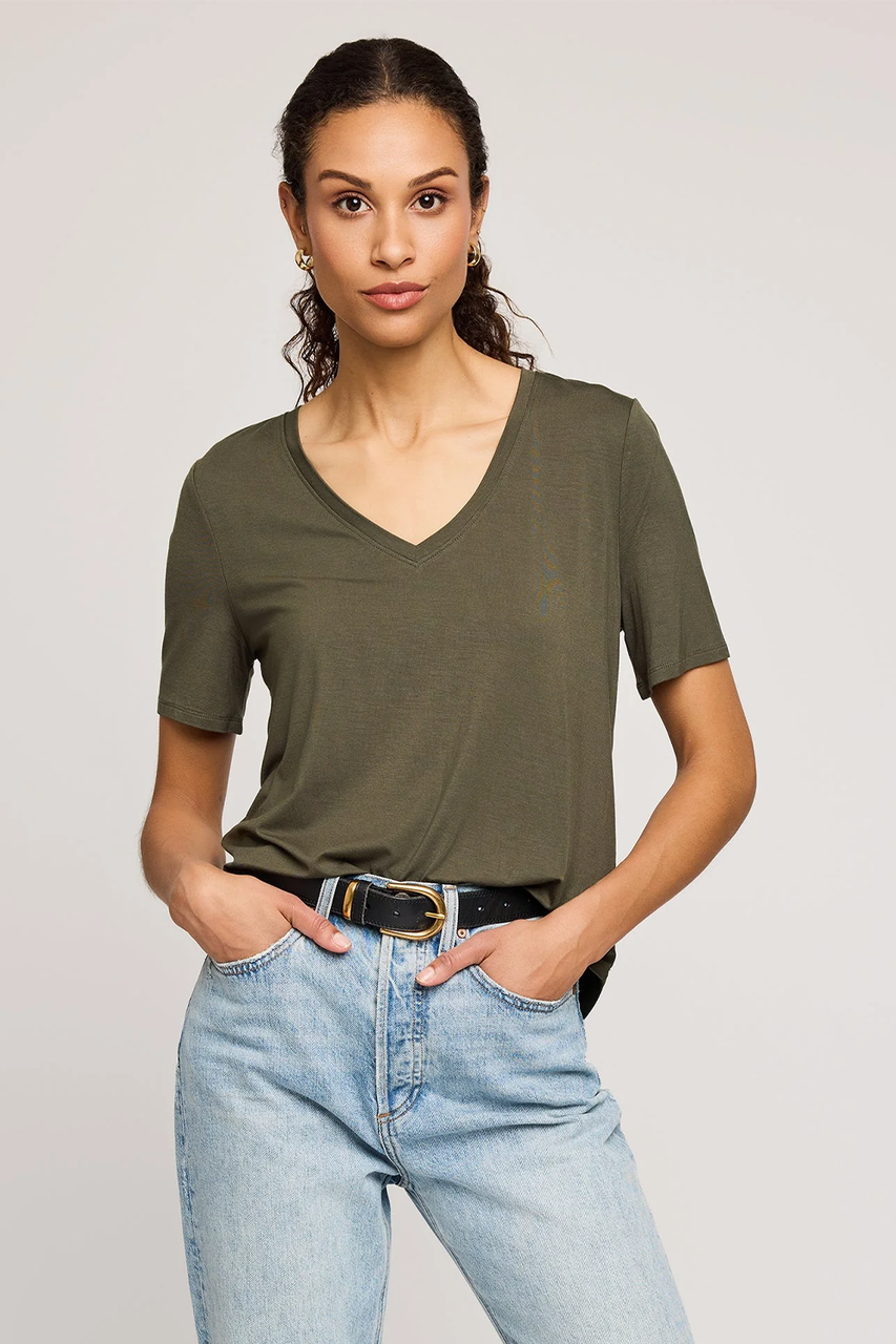 The Jamie t-shirt is made of super soft EcoVero rayon jersey. Features include a v-neckline and relaxed fit that is perfect for everyday wear. By Gentle Fawn.