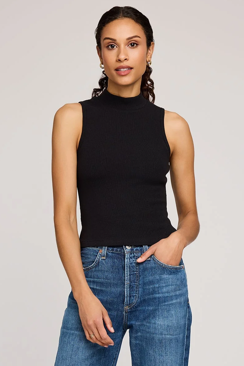 The Michelle tank is made of a mid-weight cotton viscose ribbed fabric. Features include a mock neckline and slightly cropped length for easy layering. By Gentle Fawn.
