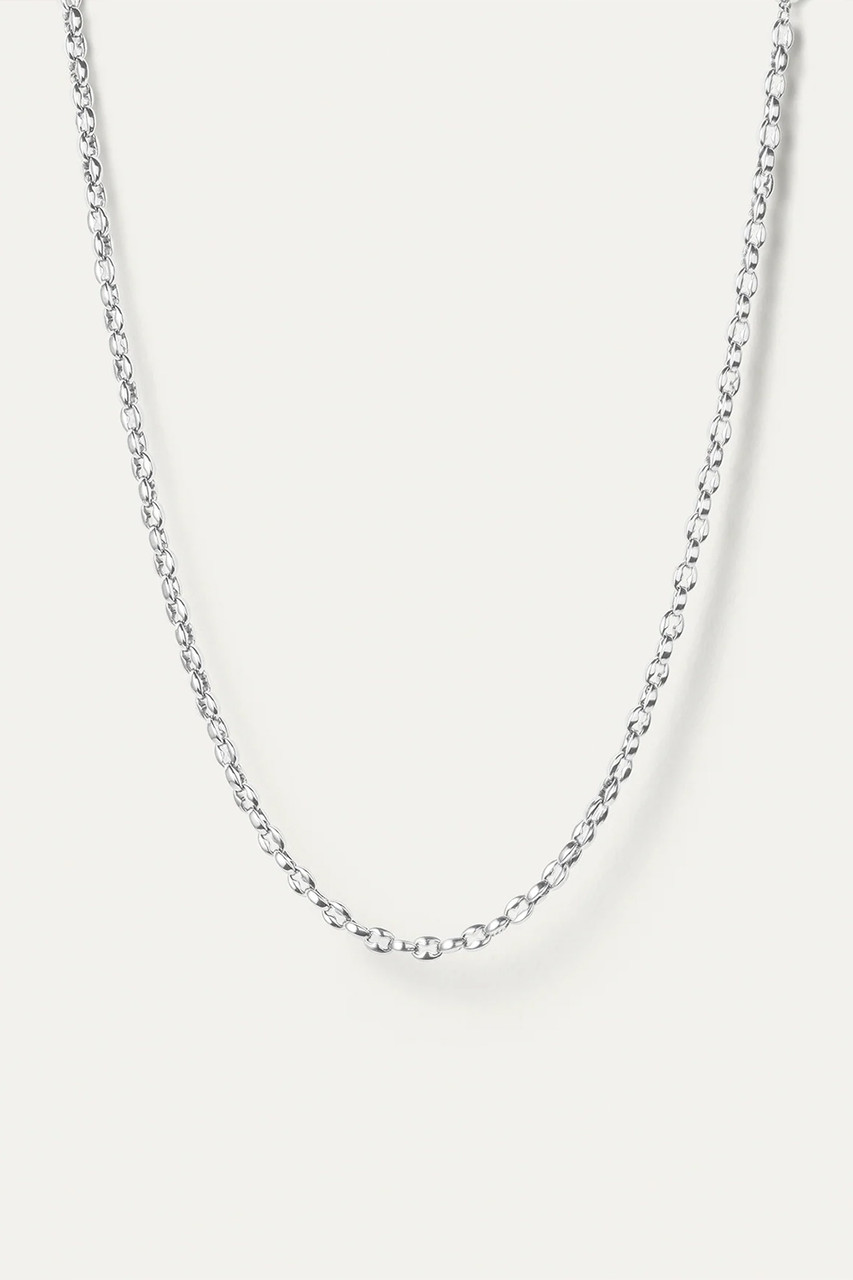 You asked for the Dhani Chain in silver, and here it is. A chunky, coffee bean chain you'll be wearing on repeat—thanks to its water-resistant stainless steel base. By Jennybird.