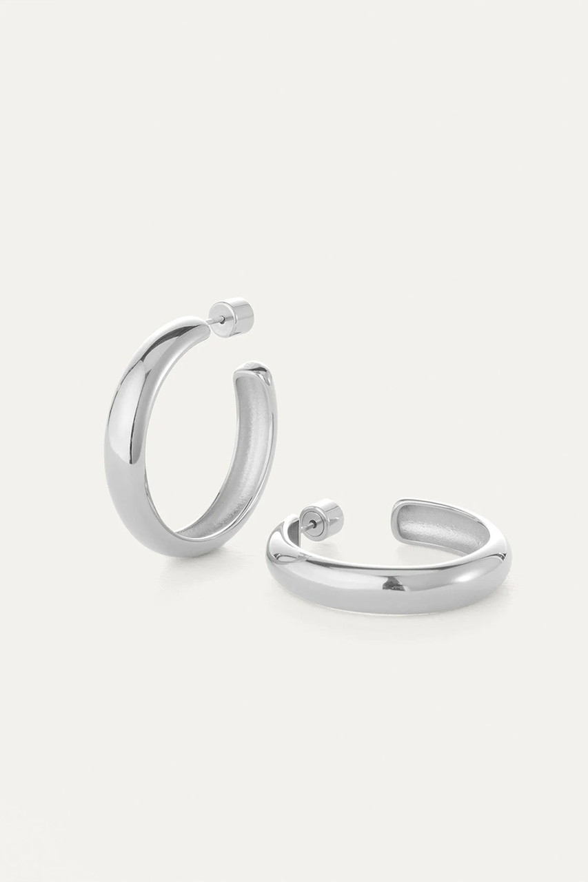 Their classic shape makes for your perfect large hoop earrings. Wildly lightweight and water-resistant, they're sure to be your new go-to hoops. Finished in high-polish platinum. By Jennybird.