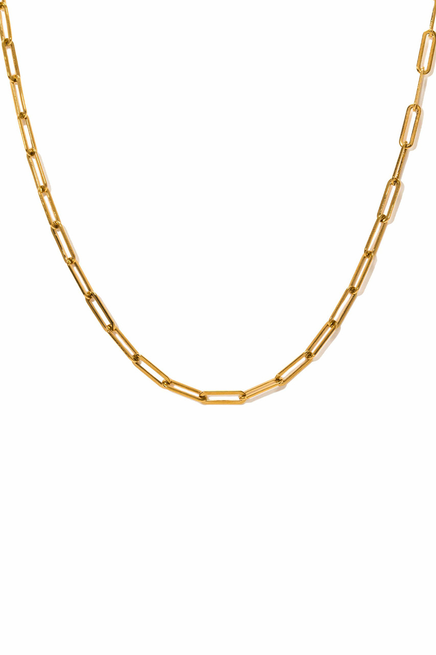Big chain energy. This waterproof gold paperclip necklace does all the work for you—chunky, sleek, and made to turn heads (and survive the pool). By Lover's Tempo.