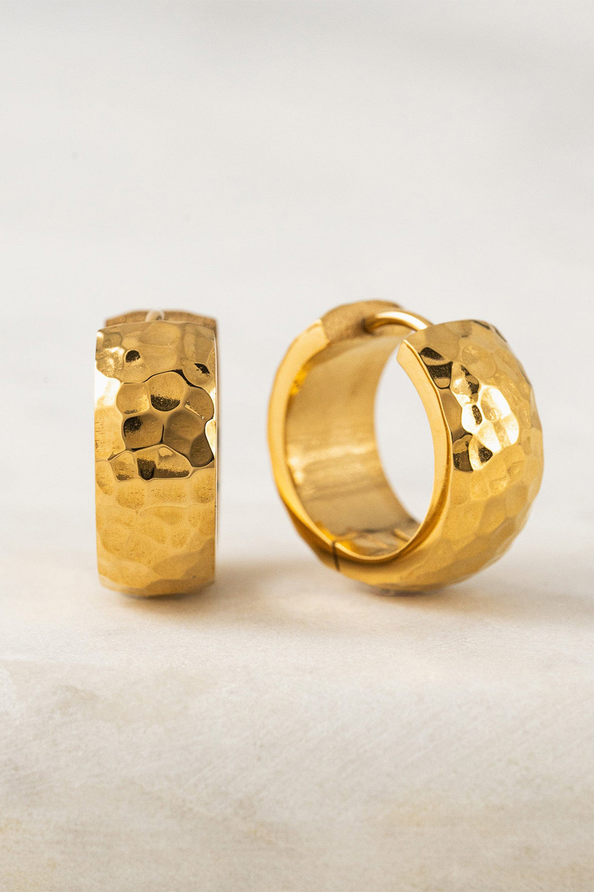 Glam hoops with a light-catching surface that's akin to sunshine. Made with PVD and stainless steel, you can wear these waterproof earrings anywhere. By Lover's Tempo.