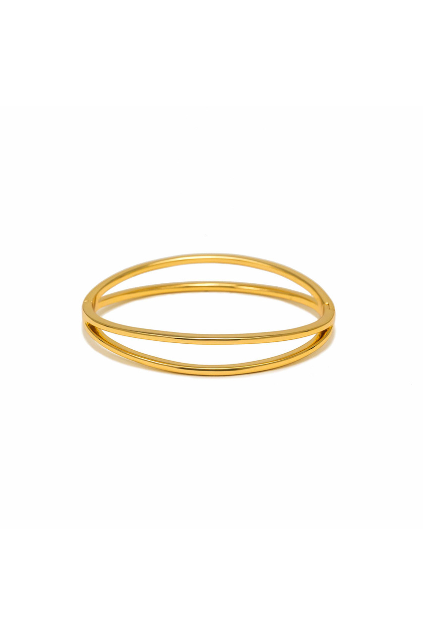 A little polish goes a long way. The Latitude Click Bangle is crafted from brass with a 14K gold-plated finish and a secure click closure for easy, everyday wear. Clean and minimal, it layers beautifully or shines bright on its own. By Lover's Tempo.