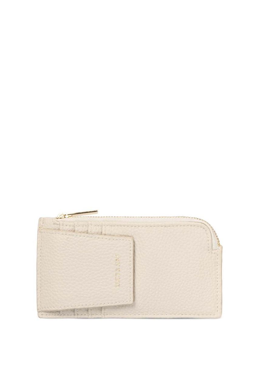 Cardholder with zip coin pocket, 4 card slots with a flap and snap closure, and a slip pocket at exterior back. By Matt & Nat.