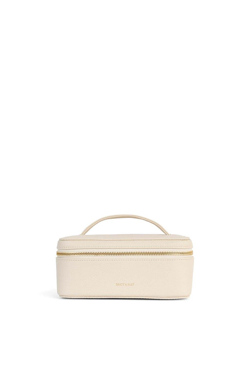 Vanity case with metal zip closure and top handle. By Matt & Nat.