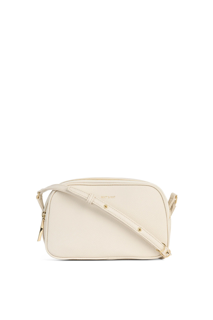 Crossbody bag with an adjustable strap and two zippered compartments. By Matt & Nat.