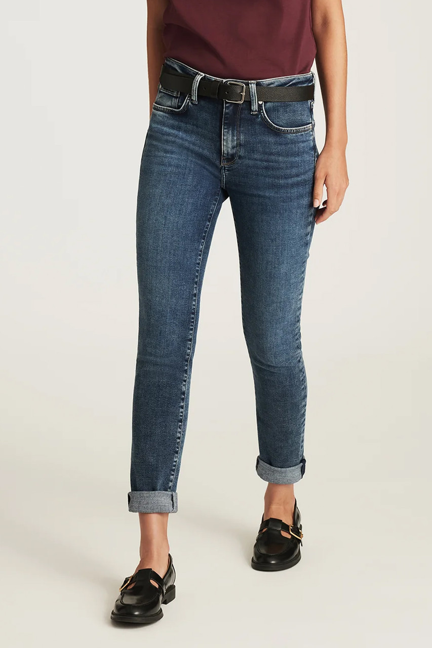 Inspired by your boyfriend’s favourite jeans, Kathleen perfects the slouchy look with a silhouette that’s all yours. A comfortable mid rise, slightly tapered leg, and cuffed hem offer an easy, laid-back feel. This pair comes in a dark blue wash with tonal whiskering. By Mavi.