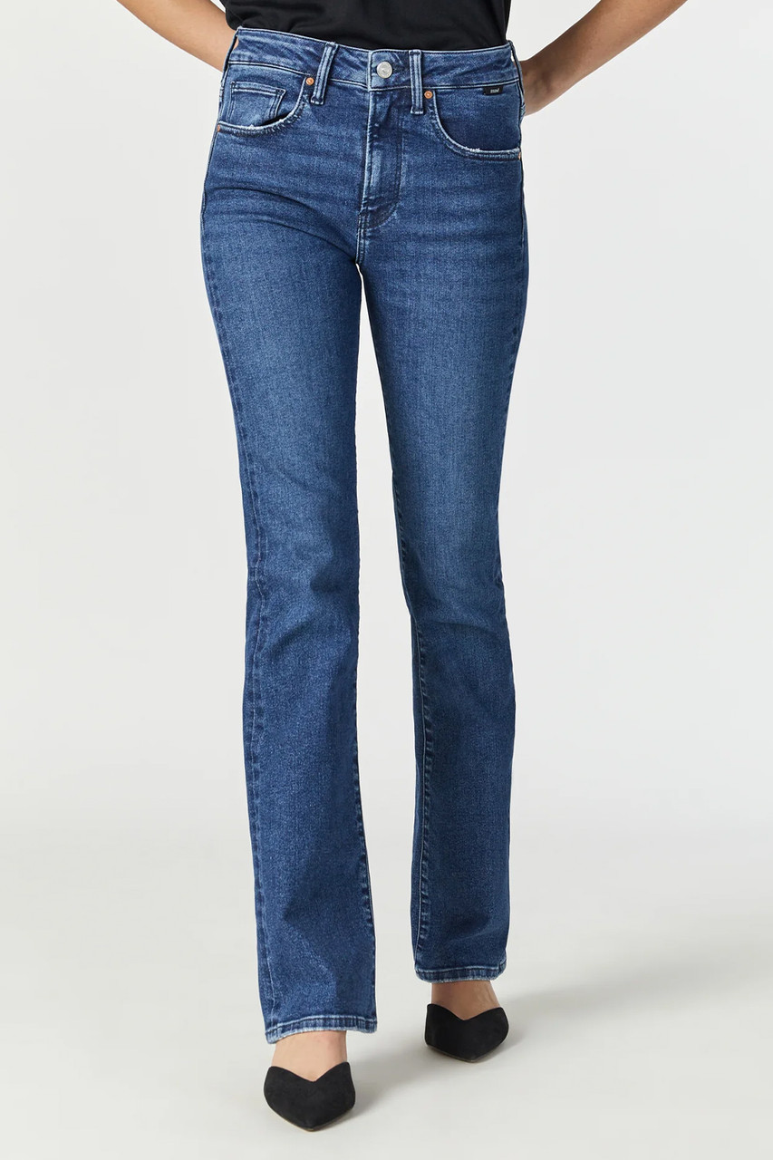Flexibility is in the name, and that’s what our Flex Blue denim offers with its organic cotton and elastane blend that creates maximum stretch and movement. With all-day comfort that lasts wear after wear, this fabrication has the look of 90s throwback jeans and the feel of a stretchy legging. By Mavi.