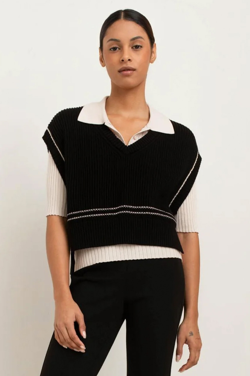 Refined texture. A soft knit vest that adds depth and dimension to any look. Layer the Ash over a long sleeve for transitional ease or wear solo for a clean, minimalist outfit. By Paper Label.