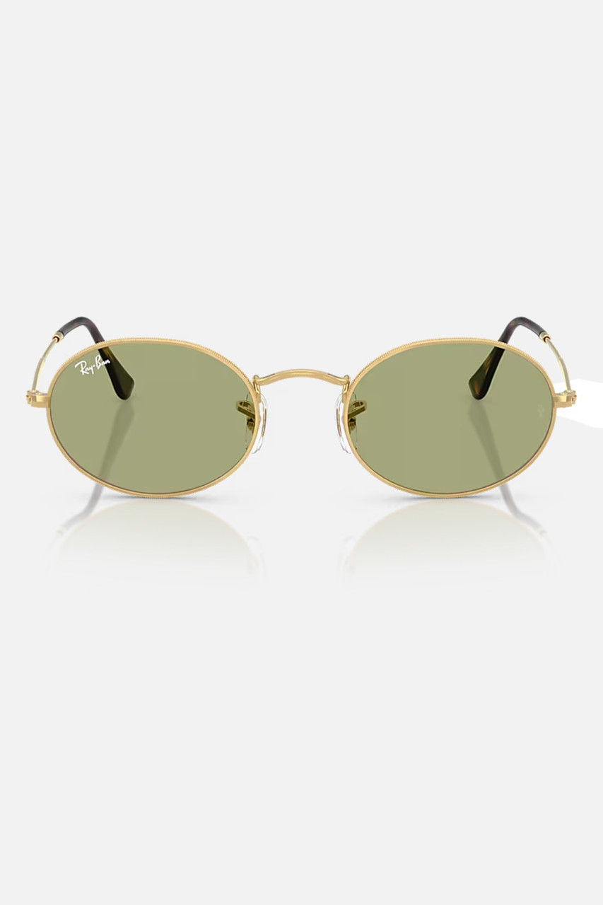 Ray-Ban OVAL sunglasses are a unique metal frame with an oval lens shape that will add a touch of vintage style to any look. These solid bottle green colored lenses are perfect for those who want to make a statement without being too flashy. Wear them in arista metal frame color with polished finish for a shiny and elegant look. By Ray-Ban.
