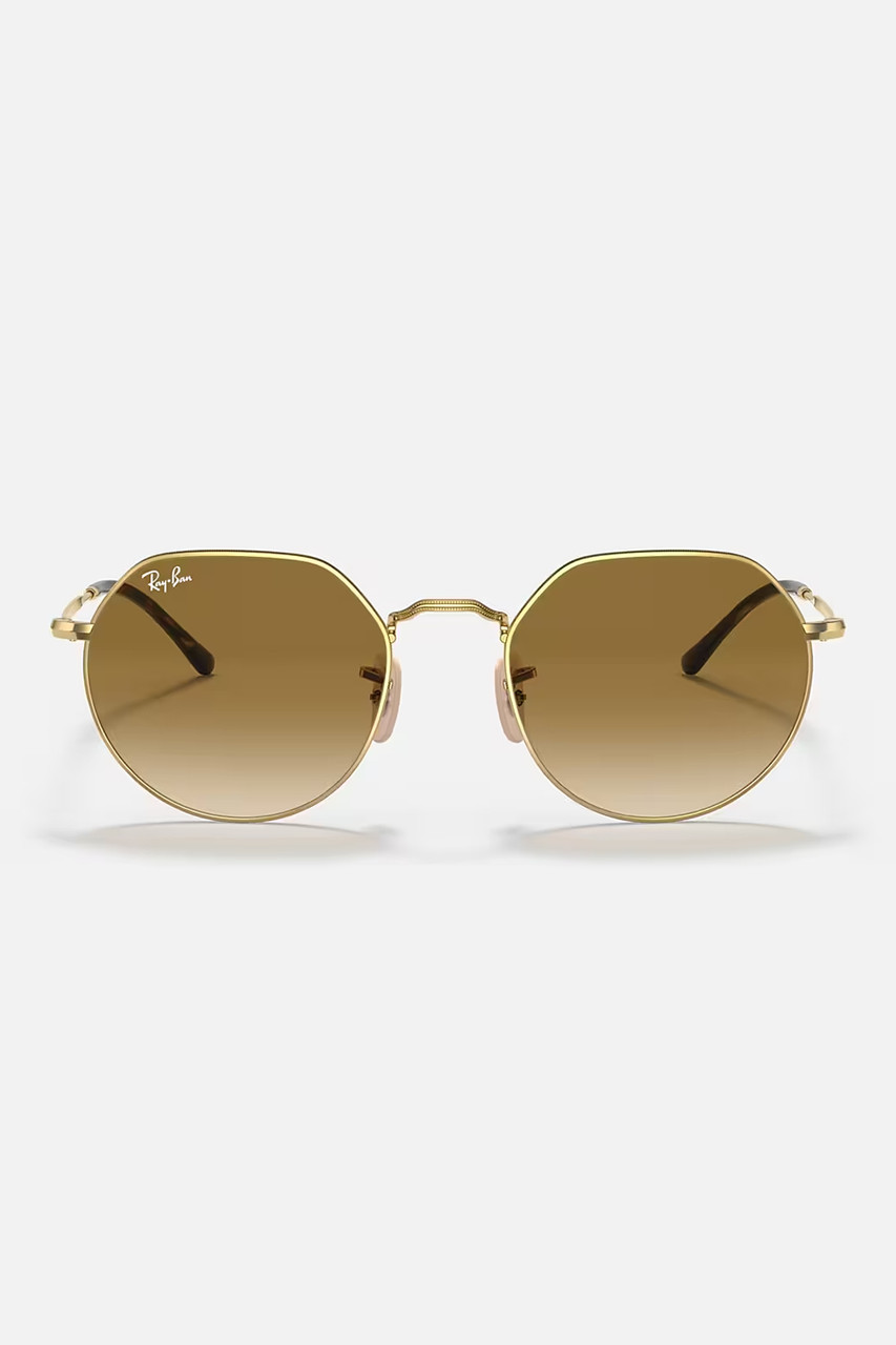 Ray-Ban RB3565 Jack sunglasses are a retro icon. The metal frame, with its distinctive oversize shape, is characterised by sharp corners and a polished gold frame. The Ray-Ban RB3565 Jack Sunglasses come with gradient brown lenses and are ready to add some sparkle to your look. By Ray-Ban.