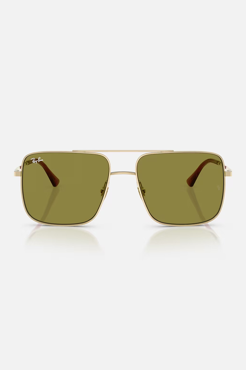 Ray-Ban Ari Bio-Based features a metal square frame in a polished pale gold color. The solid green lenses add a unique touch to this style, making it stand out from the crowd. These sunglasses are perfect for those who want to make a statement with their look. By Ray-Ban.