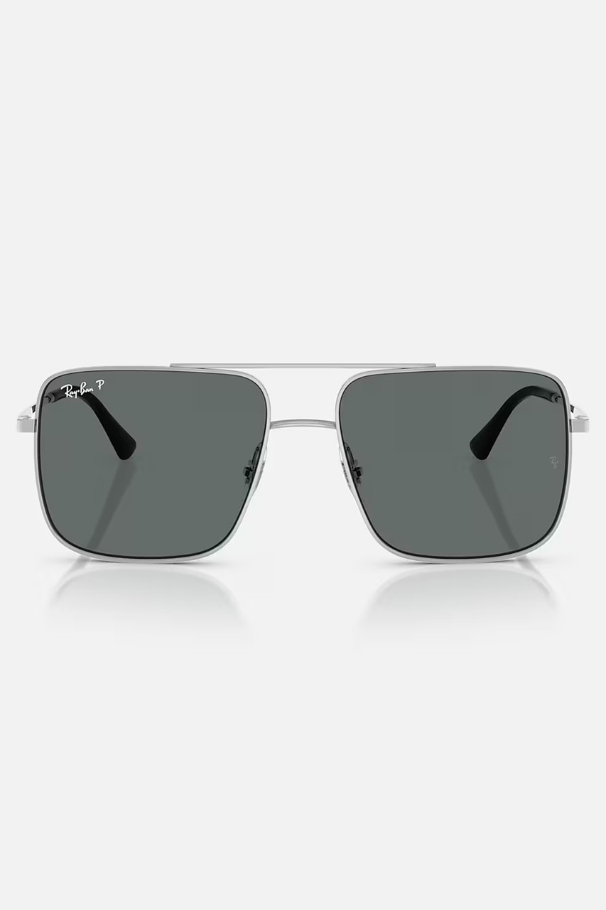 Ray-Ban Ari Bio-Based sunglasses, with their metal square frame in polished silver, offers a sleek and modern look. The lenses, in the stunning dark grey polarized color, provide 100% UV protection and reduce glare for enhanced visual clarity. These sunglasses are perfect for any occasion, from casual outings to outdoor activities. By Ray-Ban.