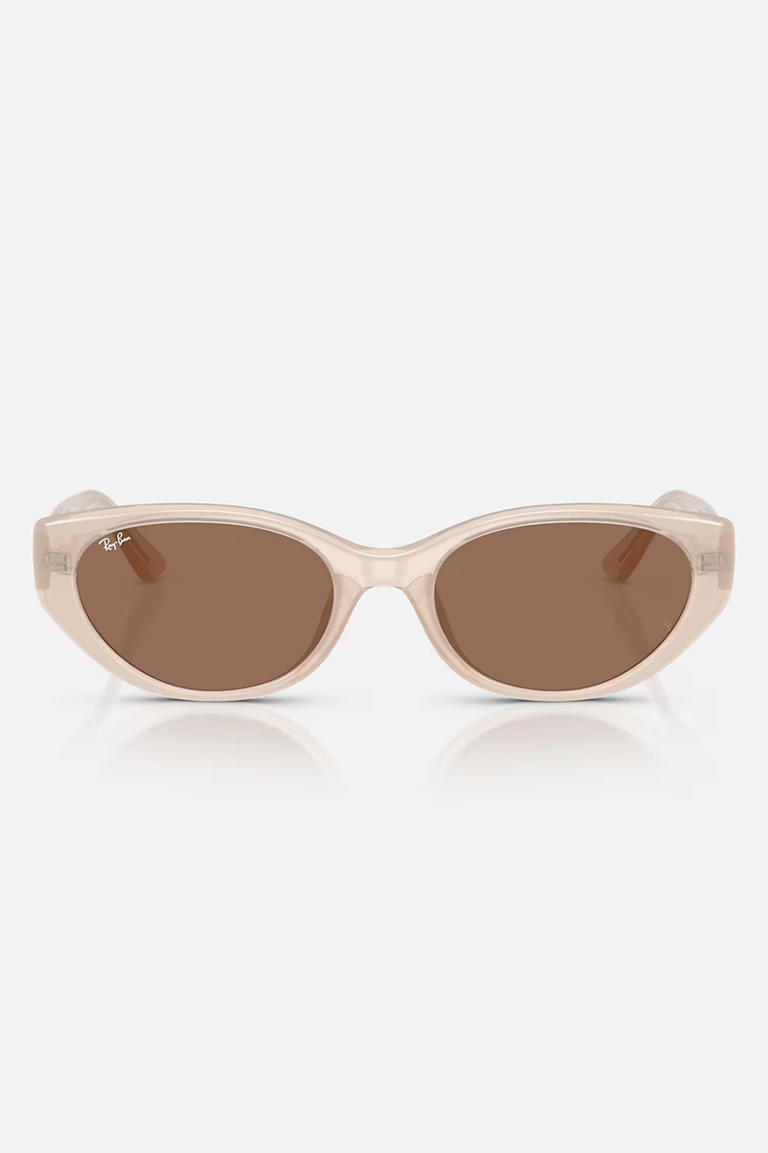 Ray-Ban RB4457D Bio-Based features a unique pillow-shaped opal beige frame with dark brown lenses. These sunglasses are perfect for making a statement while protecting your eyes from the sun. By Ray-Ban.