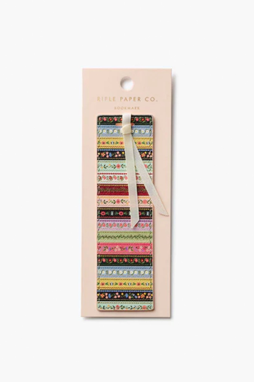 Never lose your spot with our illustrated Gemma bookmark, featuring playful floral stripes and a grosgrain ribbon tie. By Rifle Paper Co.