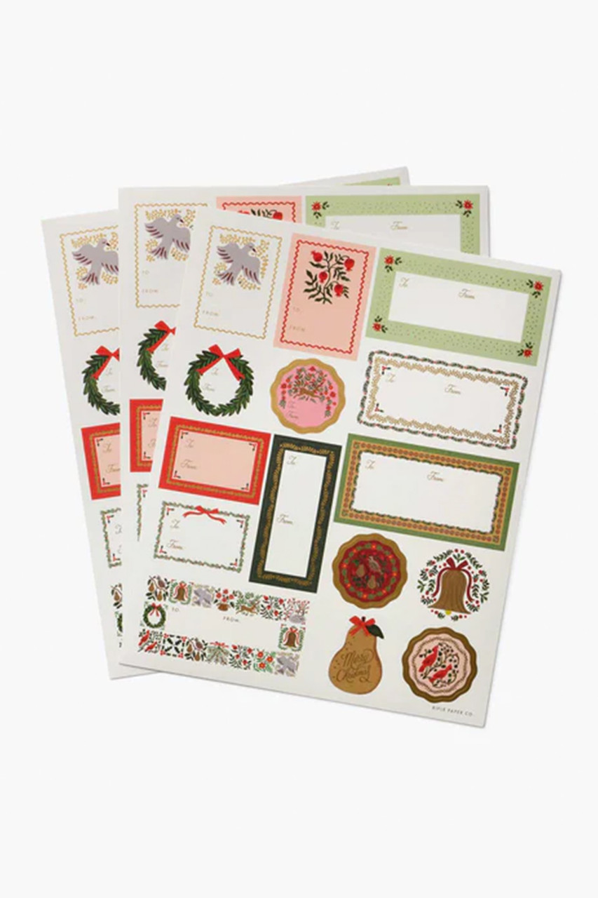 Add a finishing touch to your gifts with gold-accented stickers and labels. Three sheets include a total of 42 illustrated stickers. By Rifle Paper Co.