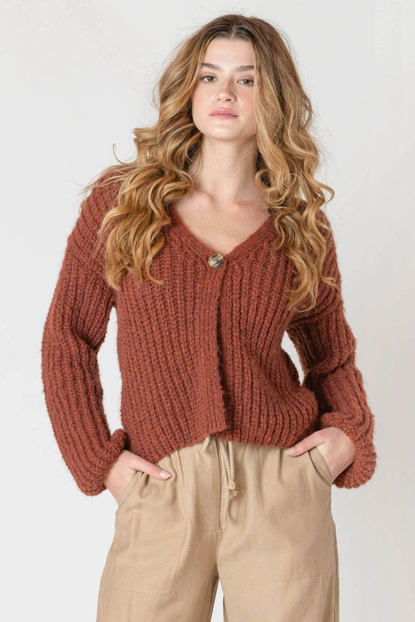 Cozy up in the Room 34 Single Button Cardigan, perfect for crisp fall days. Featuring a single button closure and long sleeves, this cardigan adds a playful pop of autumn color to your wardrobe while keeping you comfortably warm. Ideal for layering or wearing solo, it’s your go-to piece for effortless seasonal style. By Room 34.