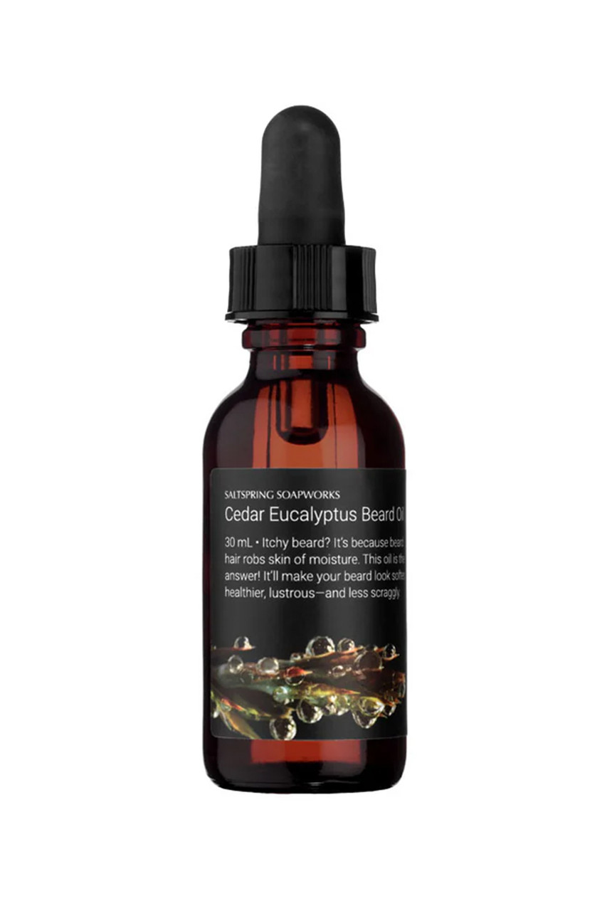 30 mL • Deep, resinous and invigorating, like the scent of a carpenter’s studio. Our Cedar Eucalyptus Beard Oil is made with jojoba, grapeseed and sweet almond oils to condition the beard and hydrate the skin, while castor oil stimulates hair growth, and essential oils of cedar and eucalyptus invigorate the senses. By Saltspring Soapworks.