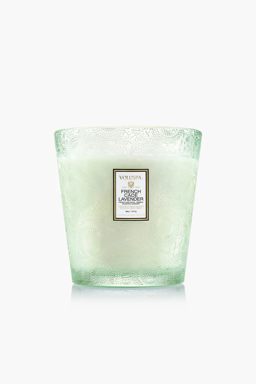 Voluspa's unique coconut wax blend is housed in a 38 oz. embossed glass jar with decorative gift box. Our three wicks allow you to enjoy fragrance throw for 80 hours. Our candles are handcrafted in the United States and feature our proprietary, clean-burning coconut wax blend and natural wicks. Our products are free of phthalates, parabens and sulfates and are never tested on animals. Up-cycle this best seller into a keepsake after the last burn.