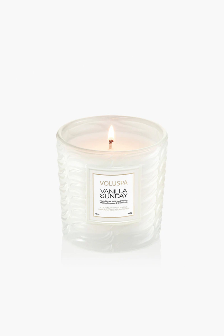 Voluspas unique coconut wax blend is housed in a 12 oz. modern textured embossed glass that emulates the swirl of a vanilla sundae, packaged in a decorative white box. The single wick allows you to enjoy fragrance throw for 60 Hours. Our candles are handcrafted in the United States and feature our proprietary, clean-burning coconut wax blend and natural wicks. Our products are free of phthalates, parabens and sulfates and are never tested on animals. Up-cycle this best seller into a keepsake after the last burn.