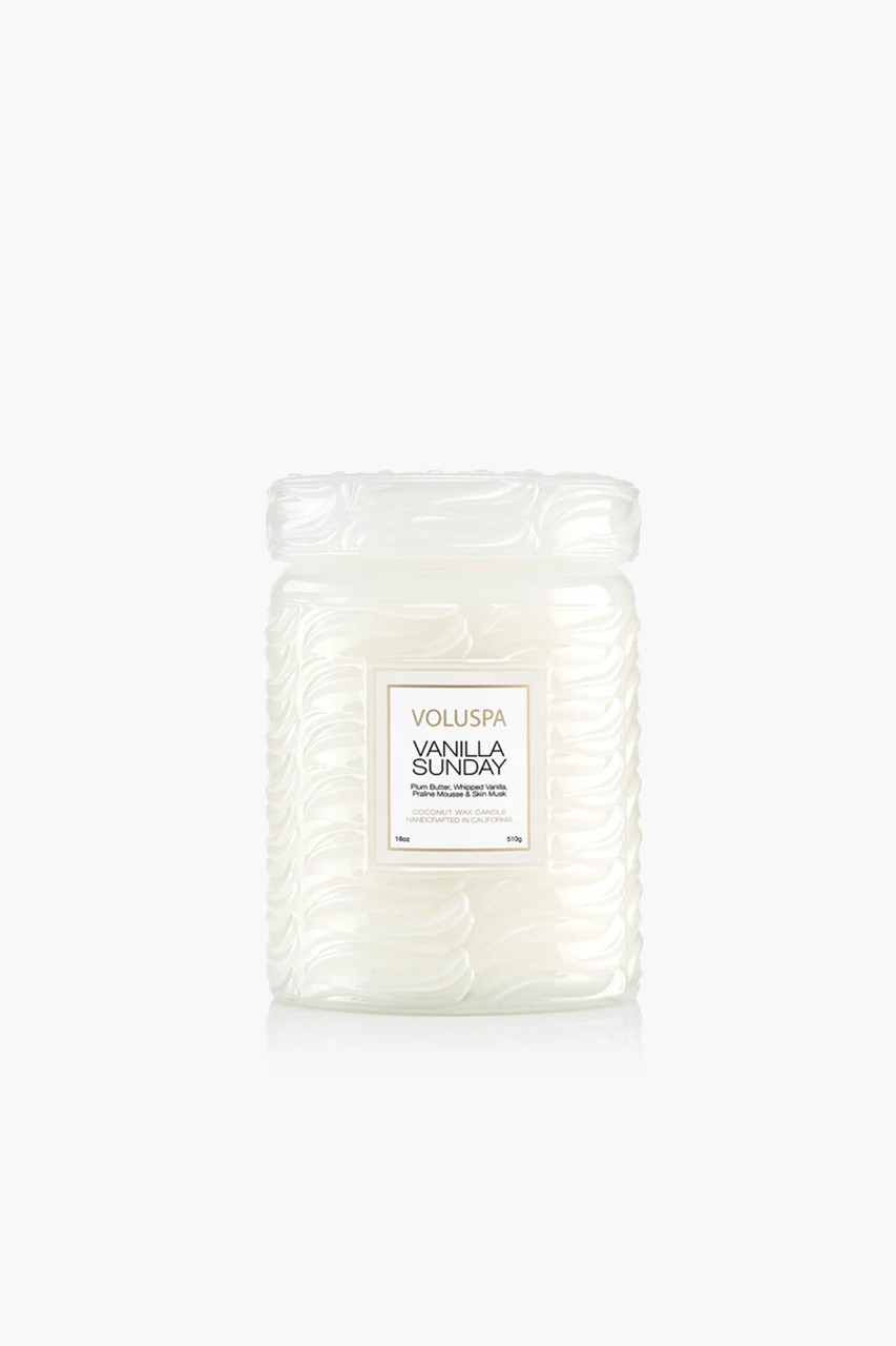 Voluspas unique coconut wax blend is housed in a 18 oz. modern textured embossed glass vessel that emulates the swirl of a vanilla sundae, with a coordinating glass lid. The single wick allows you to enjoy fragrance throw for 100 Hours. Our candles are handcrafted in the United States and feature our proprietary, clean-burning coconut wax blend and natural wicks. Our products are free of phthalates, parabens and sulfates and are never tested on animals. Up-cycle this best seller into a keepsake after the last burn.