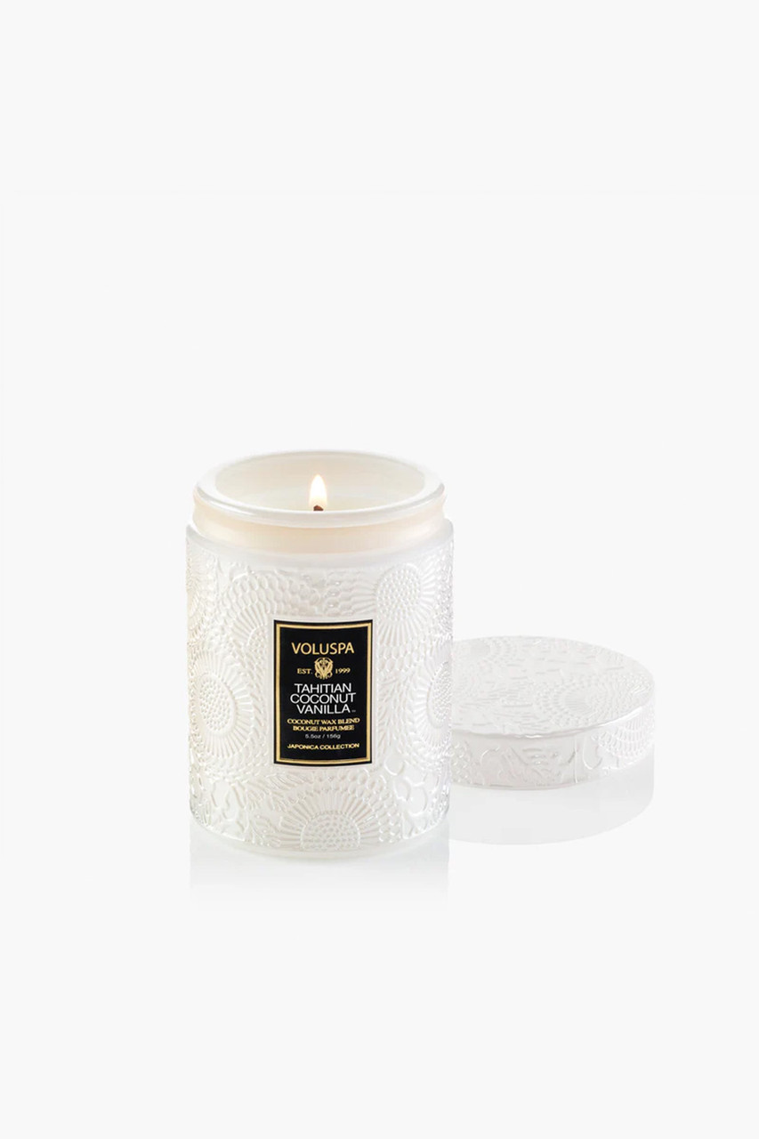 Voluspa's unique coconut wax blend is housed in a 5.5 oz. glass embossed vessel and is topped with a matching lid that keeps the candle dust-free when not in use. The single wick allows you to enjoy fragrance throw for 50 hours. Our candles are handcrafted in the United States and feature our proprietary, clean-burning coconut wax blend and natural wicks. Our products are free of phthalates, parabens and sulfates and are never tested on animals. Up-cycle this best seller into a keepsake after the last burn.