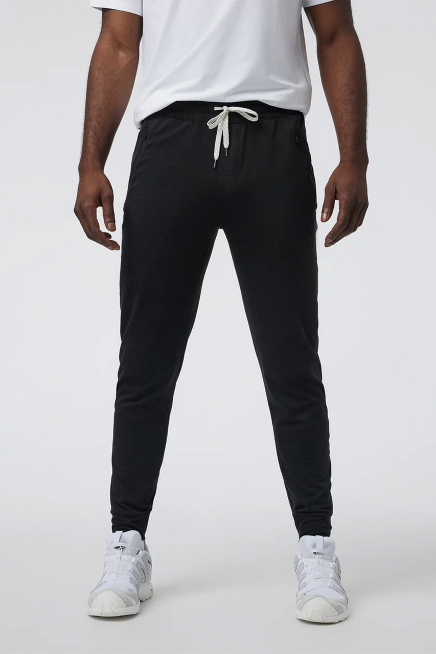 You've got to have a jogger, so go with the best: constructed with DreamKnit™, which is ultra soft, brushed performance stretch knit made with recycled material, this jogger is moisture wicking and super comfortable, with an elastic waistband and our signature drawcord. Zip pockets keep your valuables accessible, making these pants great for training, travel, and lounging. By Vuori.